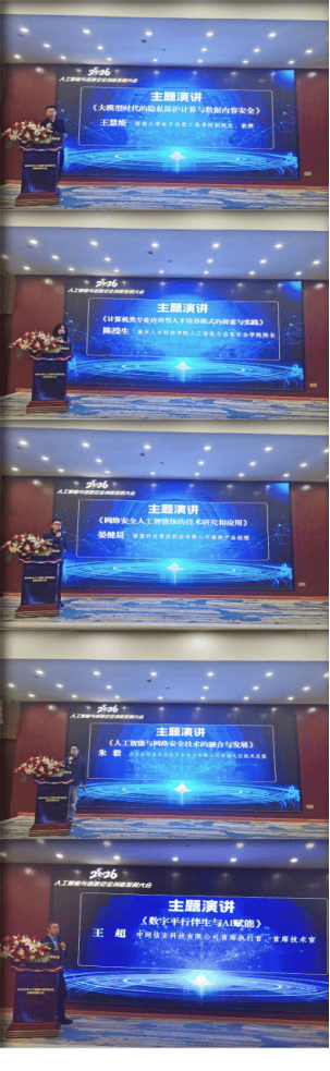 本次大会由沉庆计较机平安学会、沉庆人文科技学院从办,西南大学电子消息工程学院副院长王慧维王慧维传授、沉庆人文科技学院人工智能取消息平安学院院长陈滢生传授、绿盟科技高级产物司理晏健晨、启明星辰西南大区手艺总监朱毅、中网信安首席施行官、首席手艺官王超级别离颁发了《大模子时代的现私计较取数据内容平安》、《计较机类专业使用型人才培育模式的摸索取实践》、《收集平安人工智能体的手艺研究和使用》、《人工智能取收集平安手艺的融合取成长》、《数字平行伴生取AI赋能》从题。